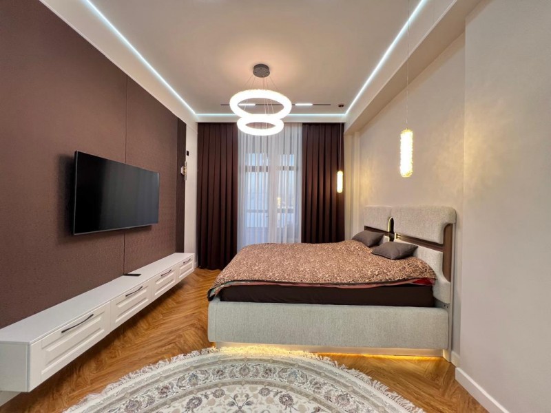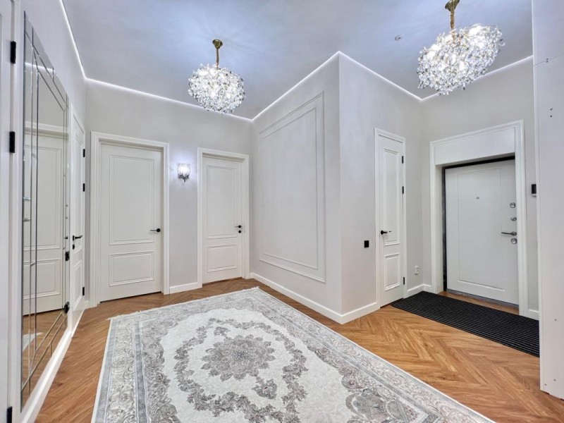 Совершенно новая квартира с уютной индивидуальной планировкой, дизайнерским ремонтом на 11 этаже площадью 90 кв.м. Расположен в одном из лучших районов и домов в городе. В шаговой доступности развитая инфраструктура, кафе, рестораны.