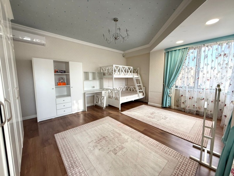 Сдаётся 4 комнатная квартира премиум класса в ЖК Фантазия, по адресу ул. Жукеева Пудовкина 87/2. Площадь квартиры составляет 190кв. метров, находится на 6 этаже из 15. Квартира светлая с дизайнерским ремонтом; имеется мастер спальня с отдельным сан.узлом, детская, гостиная, просторный зал и не менее просторная кухня с островком, полностью укомплектованым техникой. Интерьер выполнен в классическом стиле с элементами современного дизайна: высокие потолки, молдинги, качественные материалы, тёплые полы, дорогая мебель и люстры. Закрытый охраняемый двор, парковка, детская площадка. Рядом парк Победы, Sky Park недалеко Tommi Mall и гипермаркет Globus, район с развитой инфраструктурой.