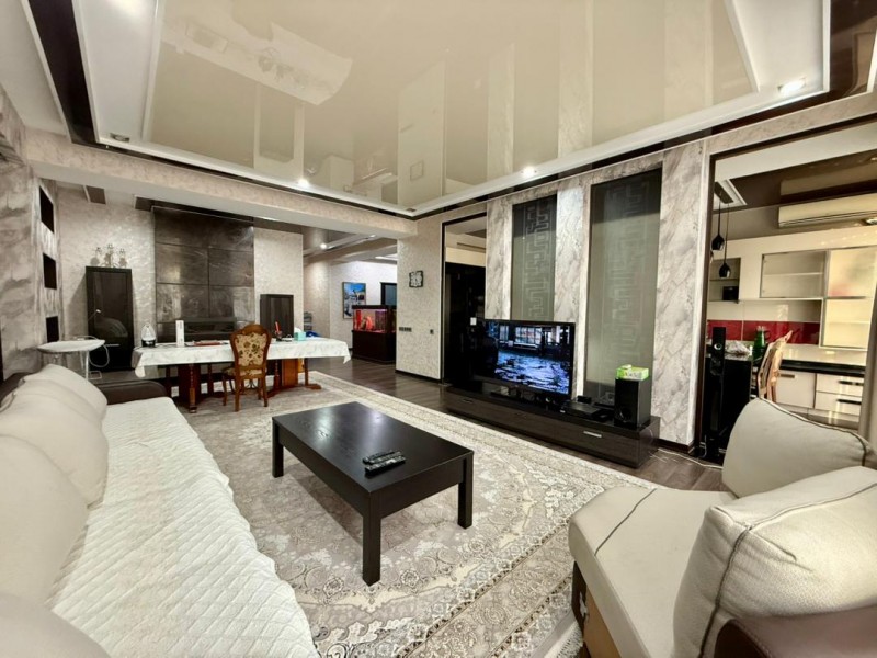 Сдается 4 комнатная квартира в ЖК Тримуф, на Эркиндик 9 / Боконбаева. Дом находится в самом центре золотого квадрата, в шаговой доступности от всех главных достопримечательностей и удобств города. Общая площадь составляет 235 кв.м, расположена на 4-м этаже. Дизайнерский ремонт, панорамное остекление, красивый вид на город. Квартира полностью меблирована и оборудована всей необходимой бытовой техникой. Имеется подземный паркинг, охраняемый двор, видеонаблюдение и детская площадка. Минимальный срок аренды 6 месяцев.
