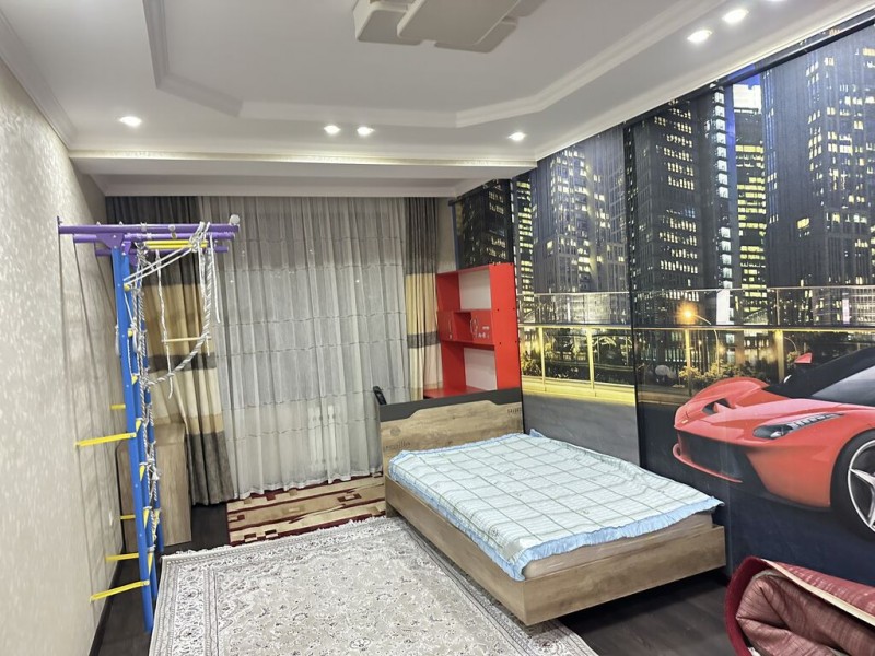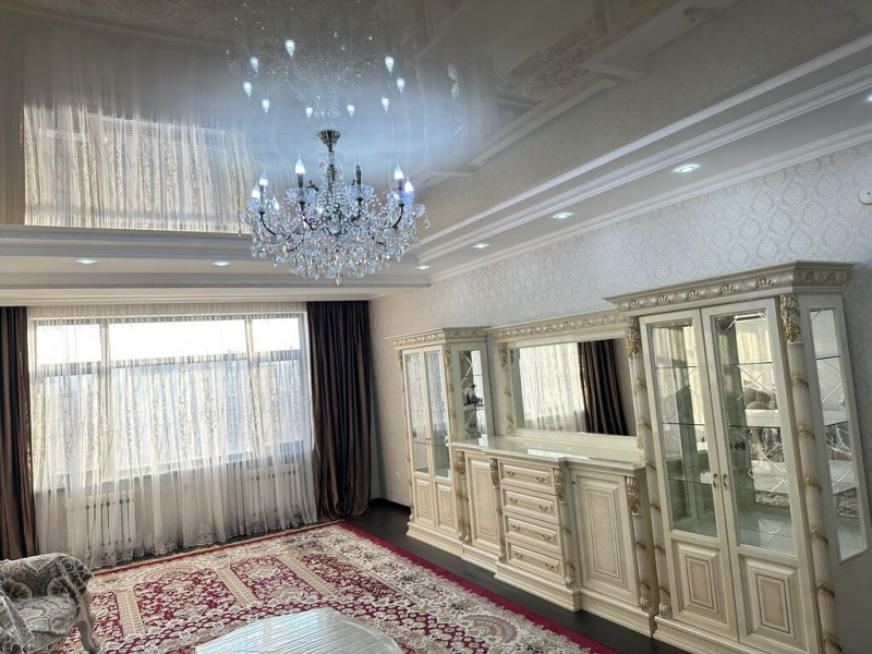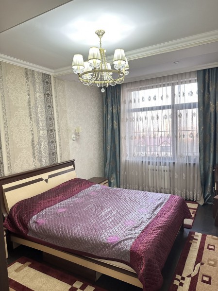 Сдаётся 4-комнатная квартира в районе Ата-Тюрк по ул. Малдыбаева, 54: 5-й этаж, общая площадь 130 кв. м, с подземным паркингом, полностью меблирована и оснащена всей необходимой бытовой техникой, на длительный срок.