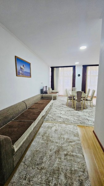 Готова для проживания: вся необходимая мебель и техника на месте. Теплые полы в квартире, отличная инфраструктура, крытый бассейн с термальной водой, соляная комната, кедровые бочки, большая столовая с вкусным питанием и отличным обслуживанием, большая детская площадка, в 30 минутах от Балыкчы.