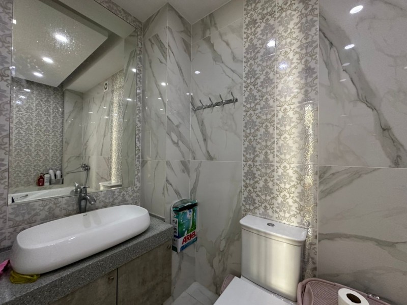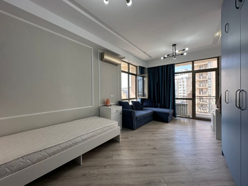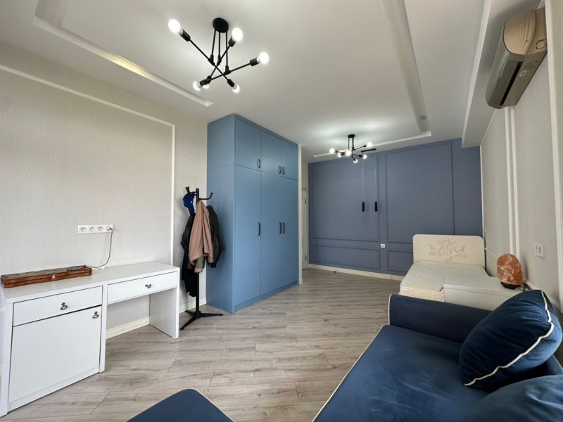 Квартира полностью меблирована и оснащена всей необходимой бытовой техникой. Район очень удобный: рядом расположены посольства, школы, детские сады, торговые центры и парк «Ынтымак» всё в пешей доступности.