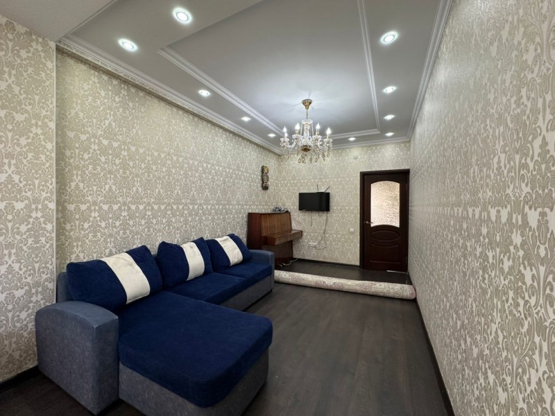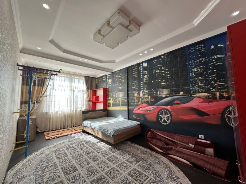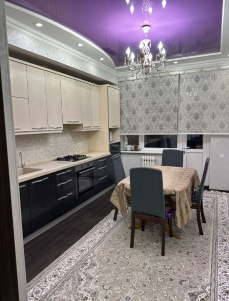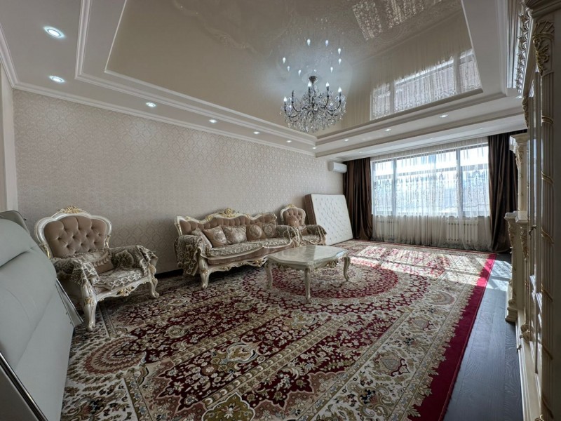 Сдаётся 4-комнатная квартира в районе Ата-Тюрк по ул. Малдыбаева, 54: 5-й этаж, общая площадь 130 кв. м, с подземным паркингом, полностью меблирована и оснащена всей необходимой бытовой техникой, на длительный срок.