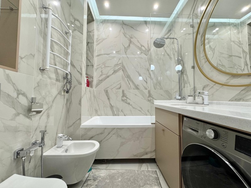 Сдается 2 комнатная квартира на Сыдыкова 139, в районе ТРЦ Бишкек Парк. Просторная и светлая, ранее не сдавалась. Общая площадь 90 кв. м, 8 этаж. 1 спальня, зал, 2 санузла, 3 балкона. Полностью укомплектована мебелью и бытовой техникой. Отличное расположение центр города с развитой инфраструктурой.