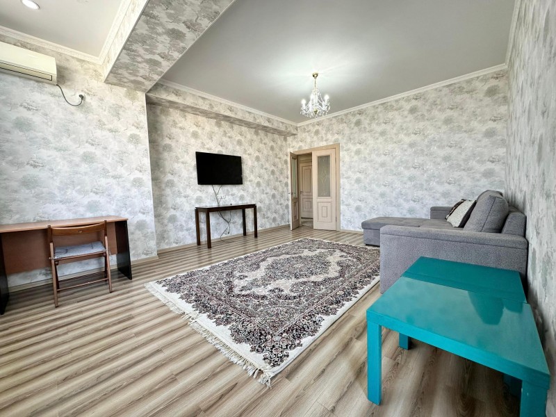 Сдается 3 комнатная квартира в золотом квадрате. Улица: Исанова 33. Общая площадь 106 м2. 12 этаж из 14. Имеется зал, 2 спальни, кухня + небольшой открытый балкон. Полностью меблирована, имеется вся бытовая техника.