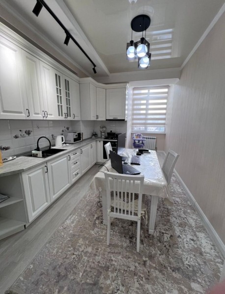 5 этаж, 100 кв м. Полностью меблирована, есть вся необходимая бытовая техника.Чистый воздух, рядом школы, детские сады и супермаркеты всё в пешей доступности.Сдаётся на длительный срок.