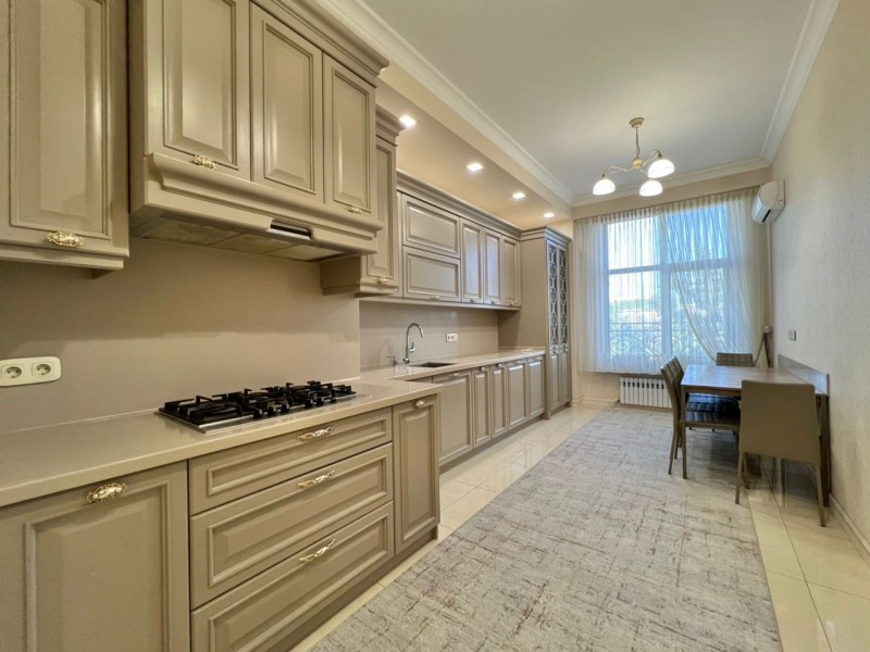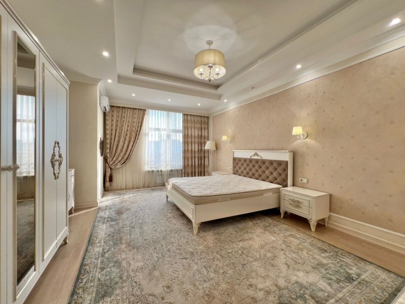 Просторная 4-комнатная квартира площадью 190 м², расположена на 4 этаже из 14, в престижном жилом комплексе ЖК “Монреаль” в самом центре города — в Золотом Квадрате.