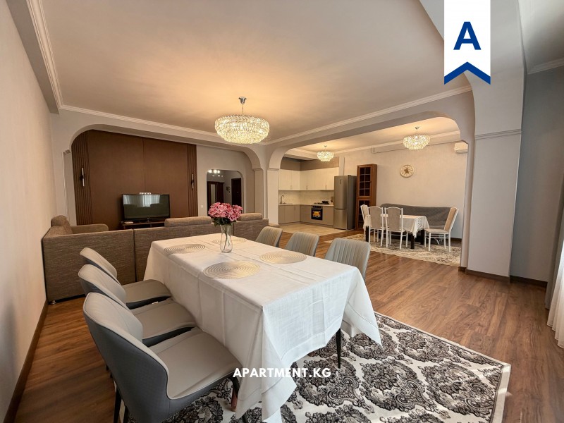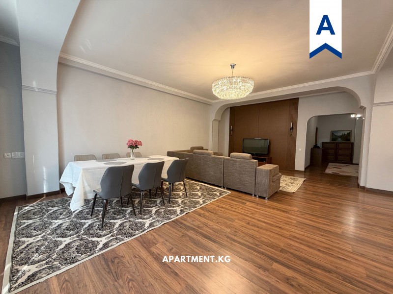Сдается 3 комнатная квартира в золотом квадрате. Улица Орозбекова 15. На 4 этаже из 5. Общая площадь 145 кв.м. 2 спальни, гостиная+ кухня, 2 балкона, 1 санузел, коридор. Полностью меблирована, имеется вся бытовая техника. Закрытый двор, детская площадка. Все в пешей доступности, развитая инфраструктура.
