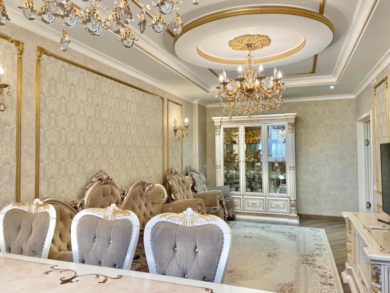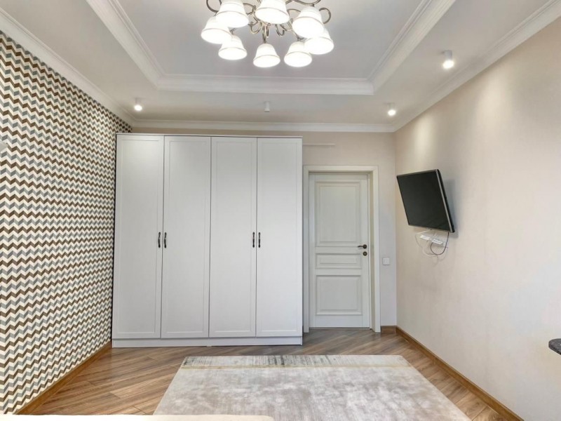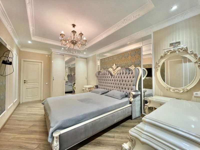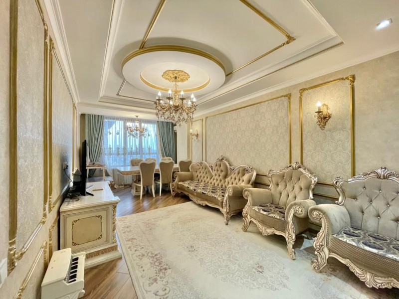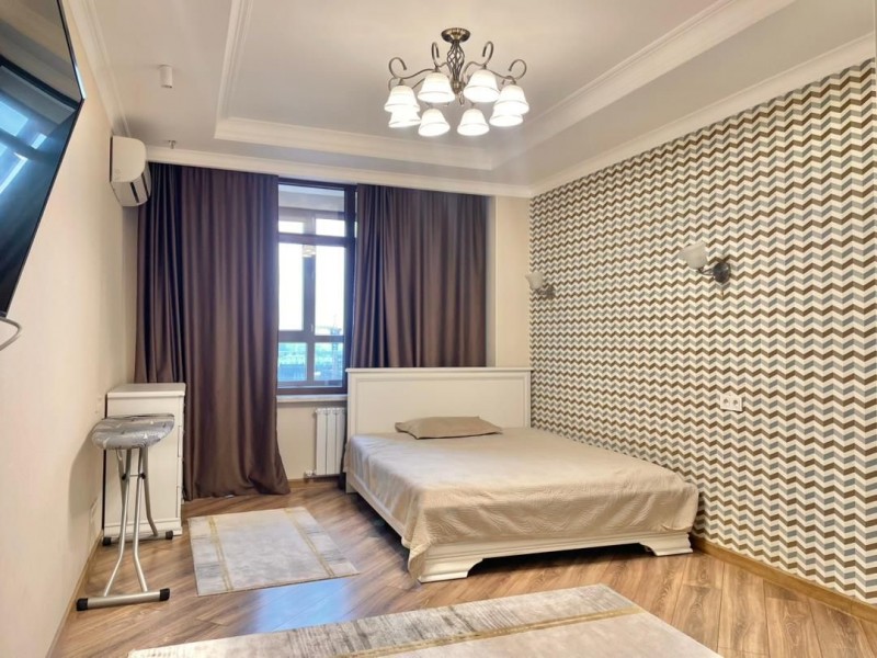 Общая площадь 117 кв.м., на 12 этаже. В квартире 2 спальных комнат, гостиная, кухня и 2 с/у. Квартира с мебелью и техникой. Сдаётся на долгий срок.