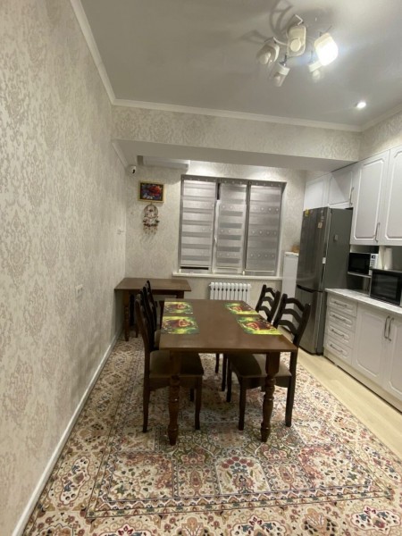 Сдается 3-комнатная квартира в «Золотом квадрате», по адресу Коенкозова / Боконбаева. Площадь 100 кв. м, 5 этаж. Полностью меблирована и оснащена всей необходимой техникой. Сдается на длительный срок.