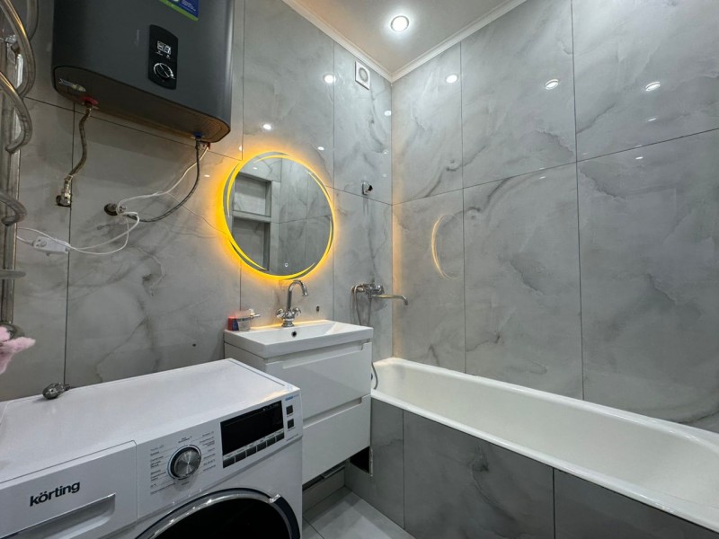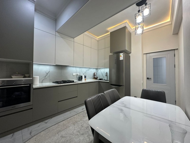 Общая площадь — 70 кв. м, 14 этаж. Квартира полностью меблирована и оснащена всей необходимой бытовой техникой. Сдается на длительный срок.