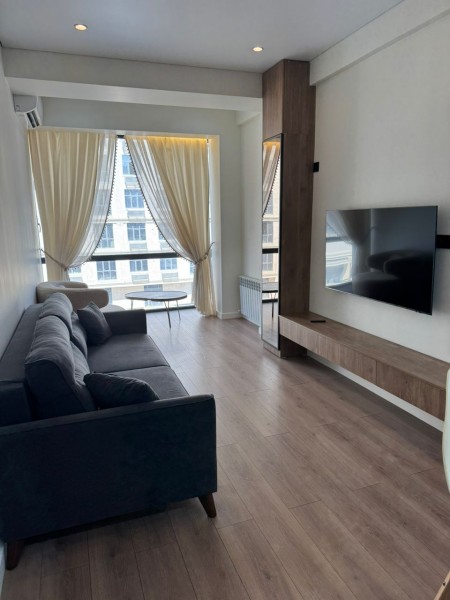 Сдается 2-х-комнатная студия в жилом комплексе "Малина". Улица Токомбаева 15/3. На 5 этаже, 56 м2. Полностью укомплектована, имеется вся бытовая техника. Закрытый двор, детская площадка, круглосуточная охрана. На длительный срок.