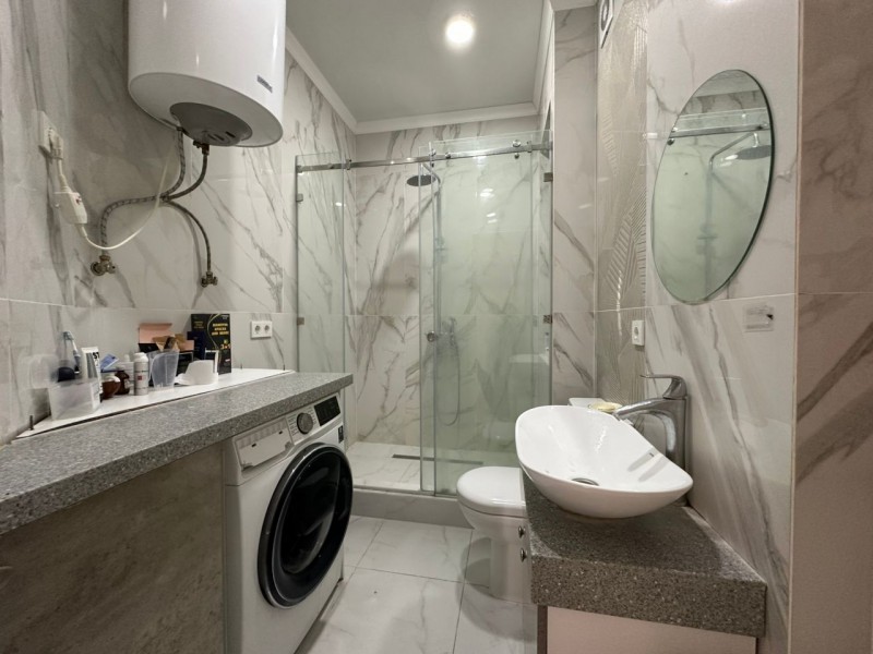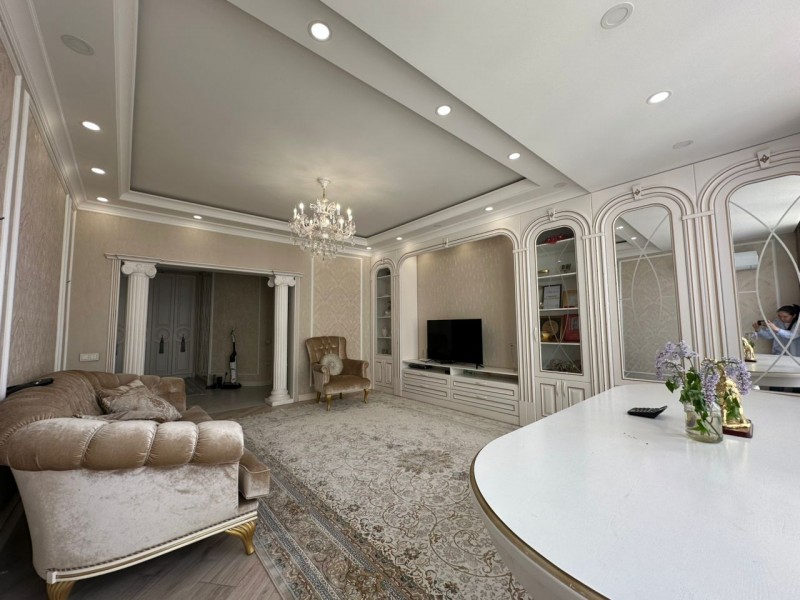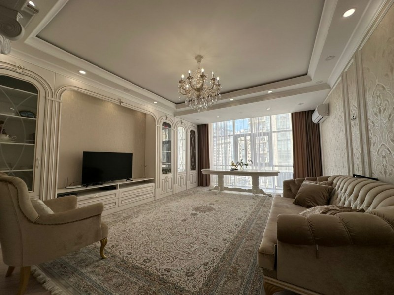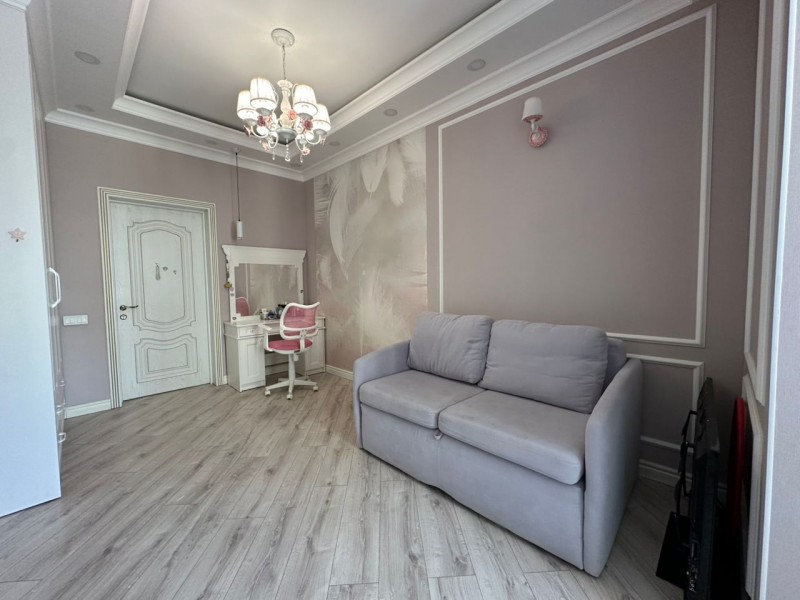 Квартира полностью меблирована и оснащена всей необходимой бытовой техникой. Район очень удобный: рядом расположены посольства, школы, детские сады, торговые центры и парк «Ынтымак» всё в пешей доступности.
