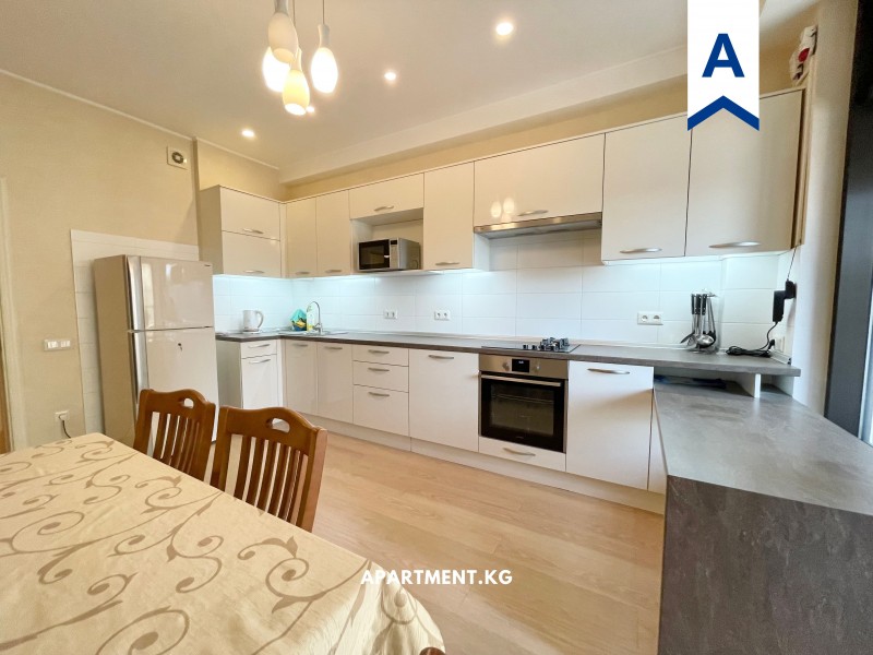 Сдается 4 комнатная квартира в золотом квадрате. Улица Токтогула 140. Общая площадь 140 кв.м. На 4 этаже из 11. Полностью меблирована, имеется вся бытовая техника. Закрытый двор, детская площадка. Парковка на 2 места.