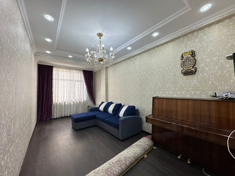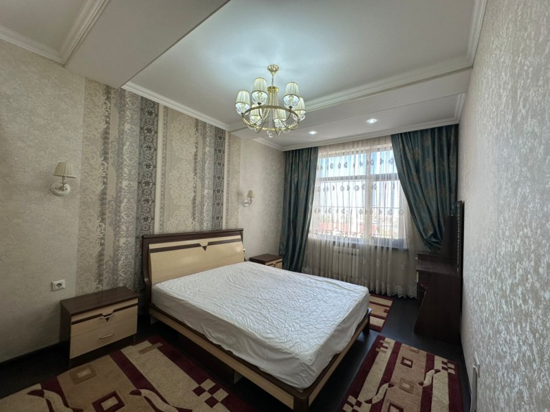 Сдаётся 4-комнатная квартира в районе Ата-Тюрк по ул. Малдыбаева, 54: 5-й этаж, общая площадь 130 кв. м, с подземным паркингом, полностью меблирована и оснащена всей необходимой бытовой техникой, на длительный срок.