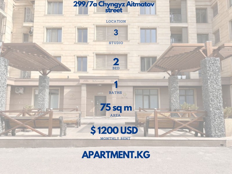 Сдается 3 комнатная студийная квартира в южной части города. Проспект Чынгыз Айтматова 299/7а. На 4 этаже с площадью 75 кв.м. 2 спальни, гостиная+кухня, гардеробная комната, санузел, коридор, балкон. Полностью меблирована, имеется вся бытовая техника. Закрытый двор, детская площадка, круглосуточная охрана. Чистый горный воздух, ближе к горам. Рядом кофейня, ТРЦ Ала-Арча. Развитая инфраструктура.