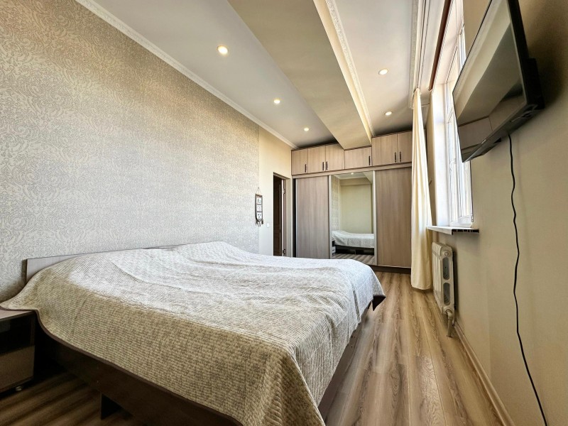 Сдается 3 комнатная квартира в золотом квадрате. Улица: Исанова 33. Общая площадь 106 м2. 12 этаж из 14. Имеется зал, 2 спальни, кухня + небольшой открытый балкон. Полностью меблирована, имеется вся бытовая техника.