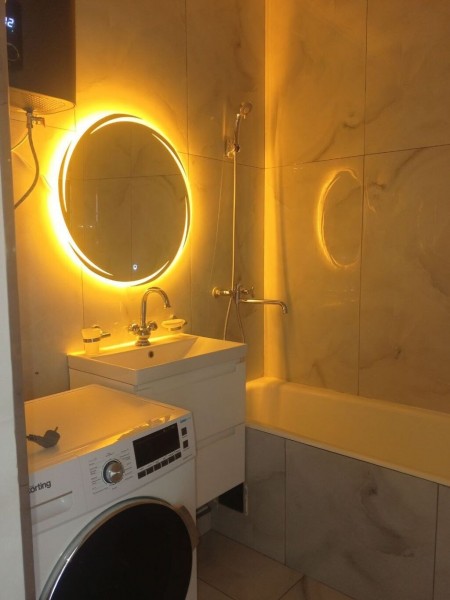 Просторная кухня укомплектована встроенной мебелью и бытовой техникой. В квартире есть горячая вода, чистое постельное бельё и полотенца. Современная планировка, качественная отделка и продуманный интерьер создают атмосферу уюта и уединения.