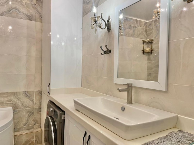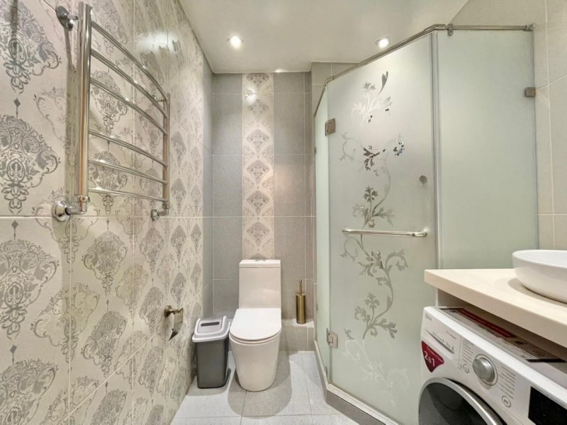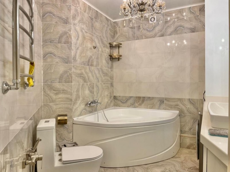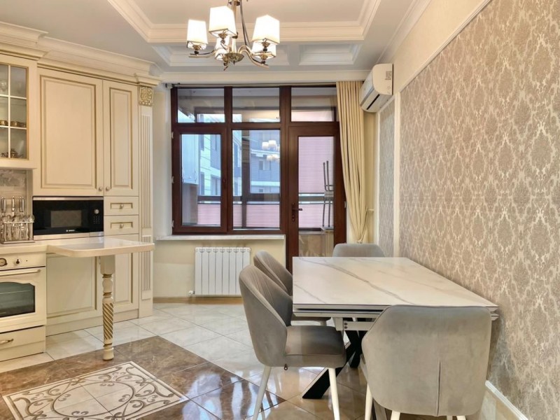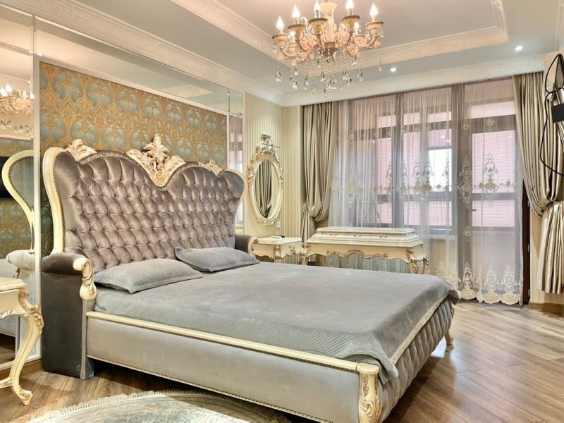 Общая площадь 117 кв.м., на 12 этаже. В квартире 2 спальных комнат, гостиная, кухня и 2 с/у. Квартира с мебелью и техникой. Сдаётся на долгий срок.