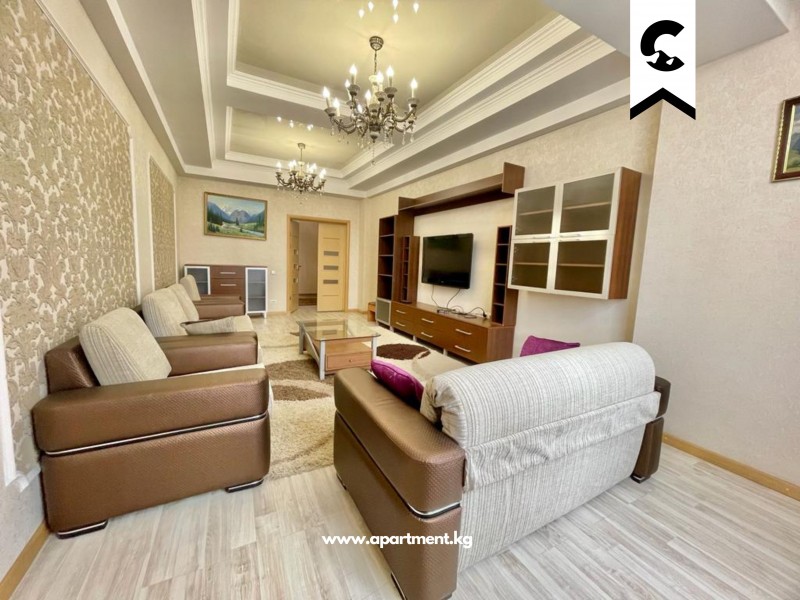 Сдается 4 комнатная квартира рядом с бульваром Эркиндик. Улица Раззакова 2. Общая площадь 150 кв.м. На 10 этаже из 10. Полностью меблирована имеется вся бытовая техника. Закрытый двор, детская площадка.