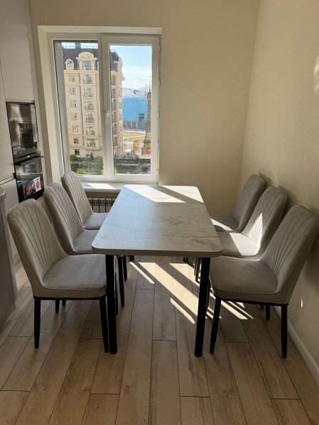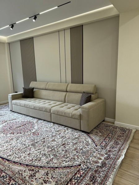 5 этаж из 10, общая площадь 90 кв. м. Квартира полностью меблирована и оснащена всей необходимой бытовой техникой. Сдаётся на длительный срок.