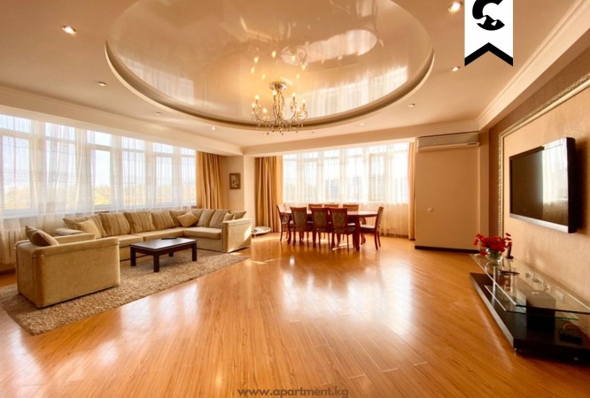 Сдается 4 комнатная квартира в золотом квадрате. Улица Раззакова 15. Общая площадь 180 кв.м. На 8 этаже из 11....